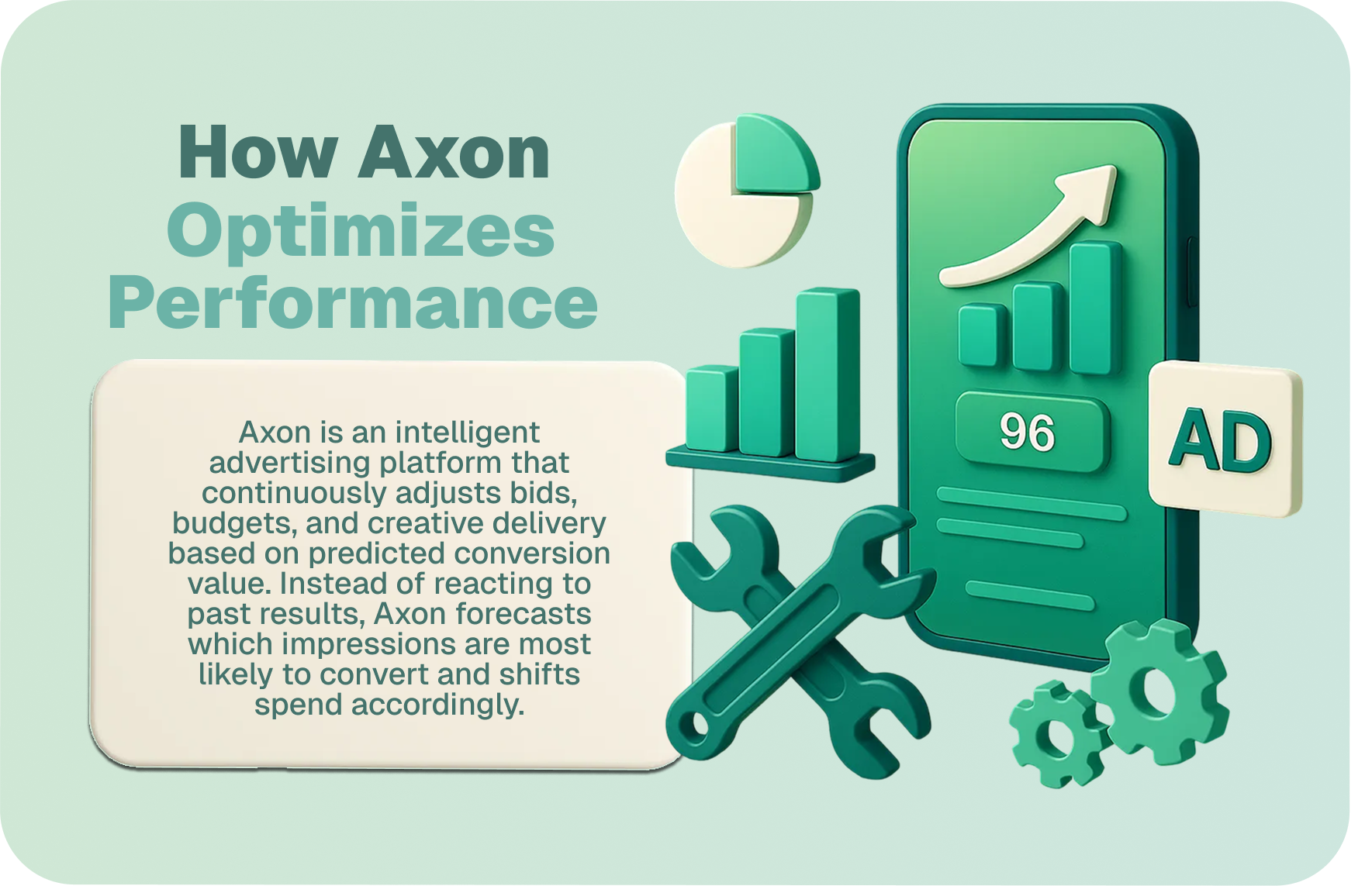 Axon is an intelligent advertising platform that continuously adjusts bids, budgets, and creative delivery based on predicted conversion value. Instead of reacting to past results, Axon forecasts which impressions are most likely to convert and shifts spend accordingly. This allows advertisers to scale efficiently without manual targeting or bid adjustments.