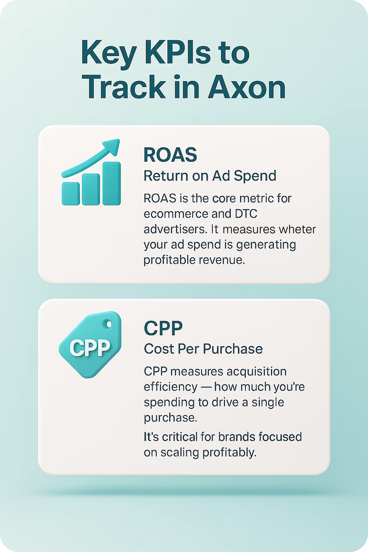 Axon is built to optimize toward meaningful goals like revenue, purchase efficiency, and conversion quality. These are the metrics that directly impact performance.