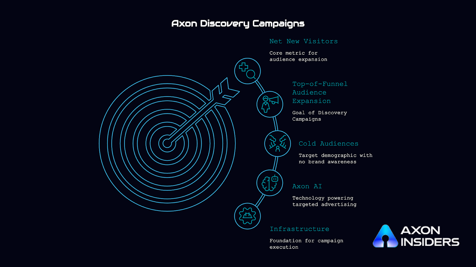 While Prospecting Campaigns convert warm visitors into first time buyers, Discovery Campaigns target people who have never even visited your site before. Discovery Campaigns go after people who have never even visited your site. Announced by Axon as the natural complement to Prospecting Campaigns, Discovery is pure top-of-funnel audience expansion.