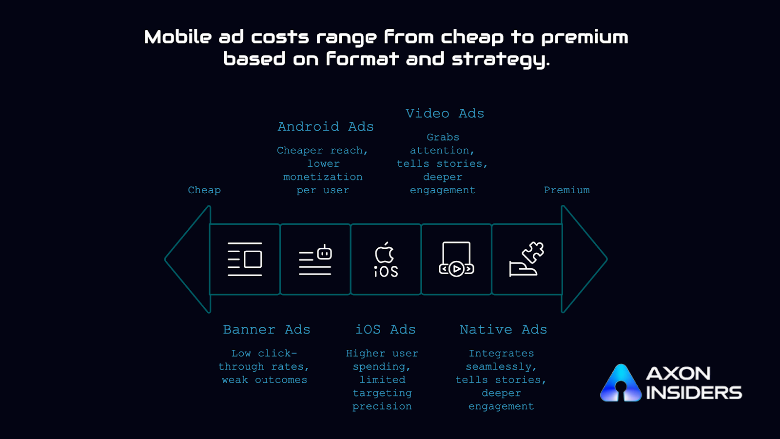 The format you choose sets the tone for both cost and performance. Video and native ads sit at the premium end because they grab attention and tell stories in ways banners never can. A rewarded video in a gaming app might cost more, but it often delivers deeper engagement and higher retention. Banner ads, on the other hand, remain cheap but are notorious for low click‑through rates. The trade‑off is clear: pay more for formats that spark intent, or save upfront and risk weaker outcomes.